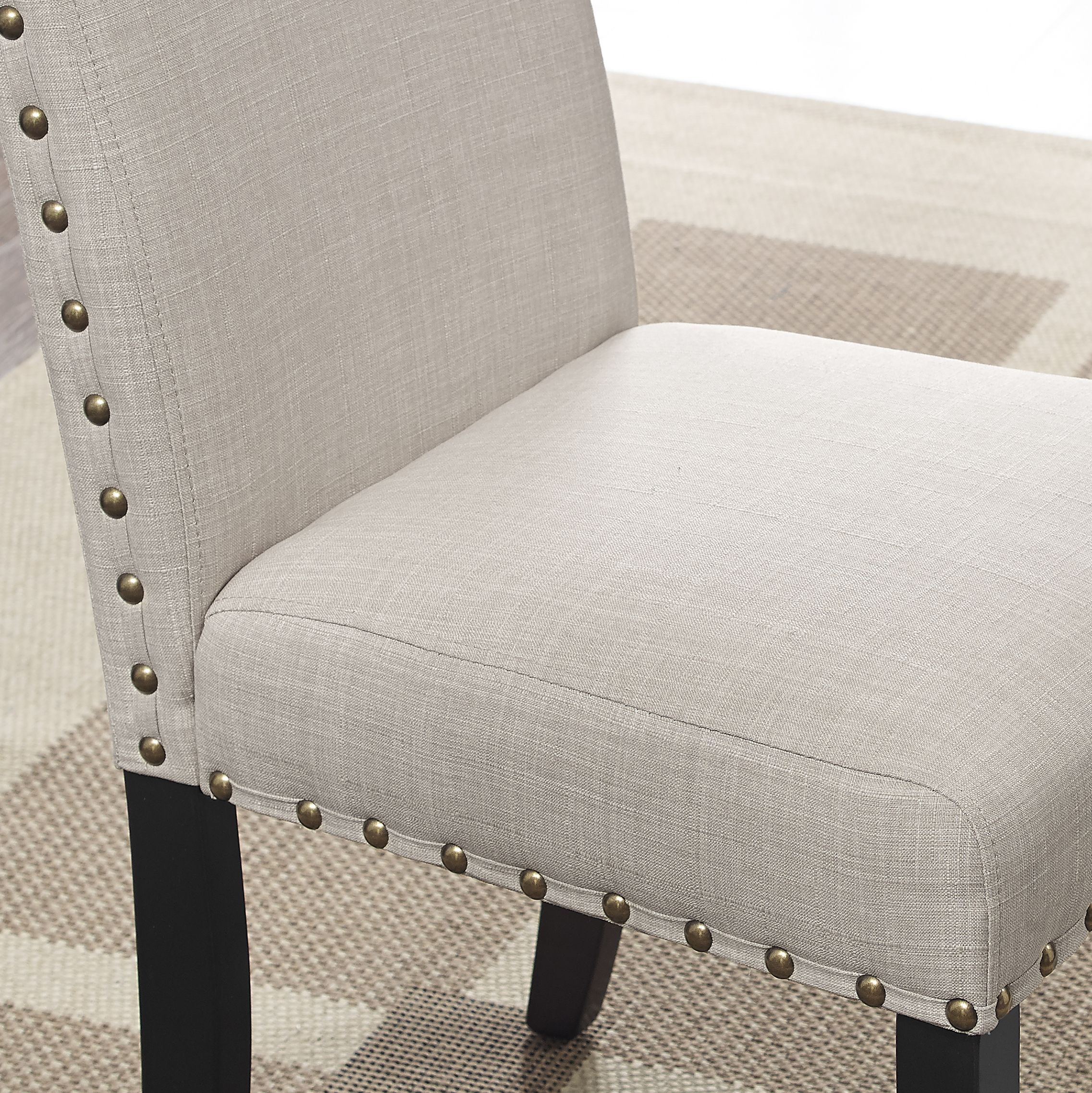 Amisos 7-Piece Dining Set, Hairpin Dining Table with 6 Chairs, 3 Color OptionsBring distinctive style to your dining space with the Amisos 7-Piece Dining Set from Roundhill Furniture. Crafted with meticulous attention to detail, this set effortlessly combines style and functionality for an exceptional dining arrangement.The set includes a spacious dining table and six comfortable chairs, providing ample seating for family and guests. The dining table features a rustic dark pine finish with a metallic hairpin design, showcasing a beautiful wood grain texture that is sure to impress your guests. The tabletop is constructed with durable engineered wood and is well-coated, ensuring long-lasting durability. Complementing the table are stylish chairs upholstered in vibrant colored linen and cotton fabric, tastefully accented with brass nailheads for a chic flair. The sturdy hardwood chair frame with solid legs in a rich dark espresso finish guarantees stability. Immerse yourself in contemporary design and lasting craftsmanship with the Amisos Dining Set.