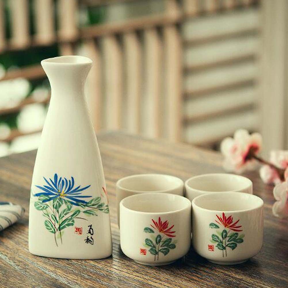 5 Pcs Japanese Style Sake Set Ceramic Wine Cup Set,Chrysanthemum 5 Pcs Japanese Style Sake Set Ceramic Wine Cup Set,Chrysanthemum