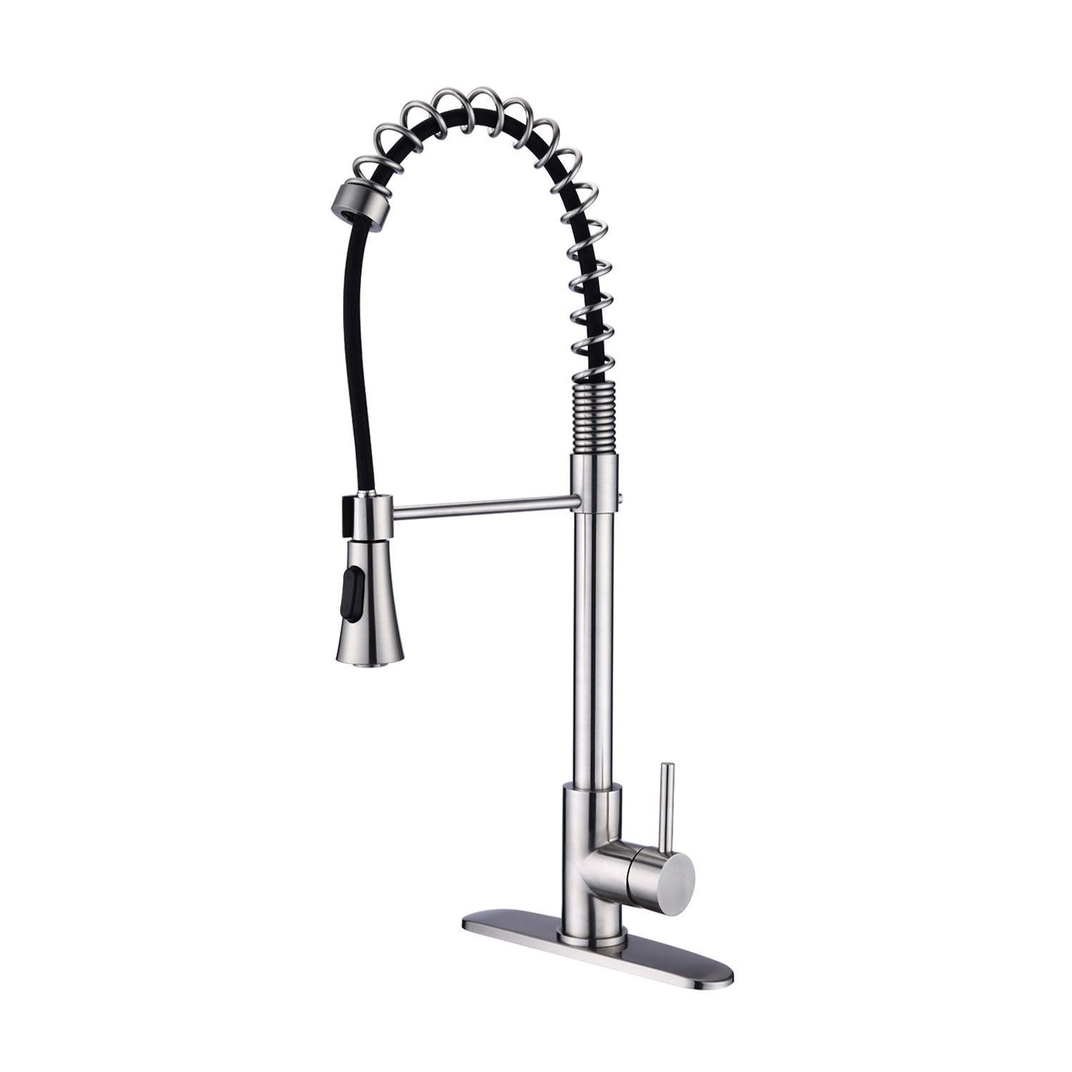 Description:This spring pull down faucet is constructed of stainless steel materials to meet all of your kitchen's needs. Stainless steel construction provides durability, making this product a reliable selection for a busy home. 360 Degree Swivel Pull Down Sprayer provide a full range of motion so you can wash your dishes from any angle .The sleek design also helps to bring a professional look to your kitchen. Its premium finish complements the look of your space and pairs well with any countertop.