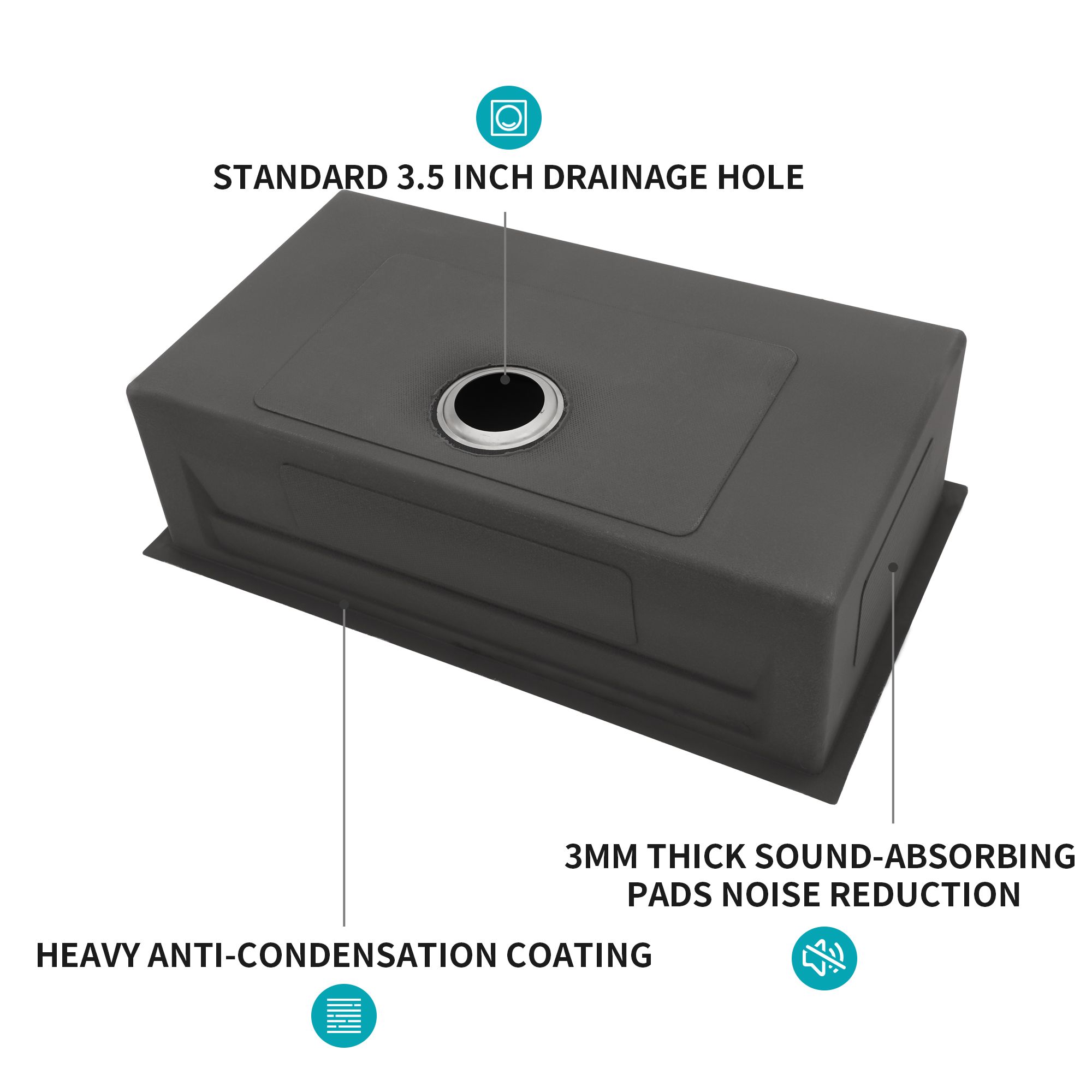 Package include: a undermount stainless steel workstation kitchen sink, rolling drying rack, colander, cutting board, drainer, bottom grid, mounting hardware and operation instruction.