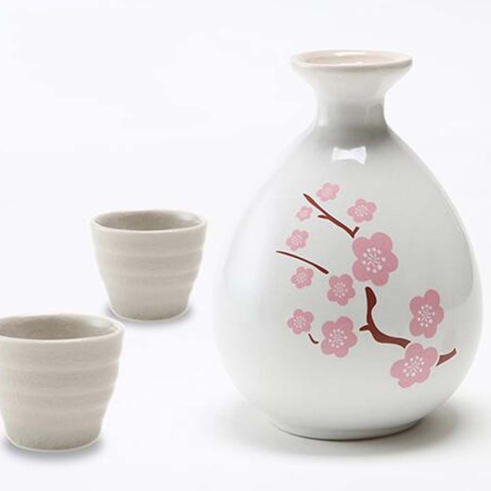 3-Piece Japanese Sake Set Peach Blossom Wine Pot Wine Cups 3-Piece Japanese Sake Set Peach Blossom Wine Pot Wine Cups