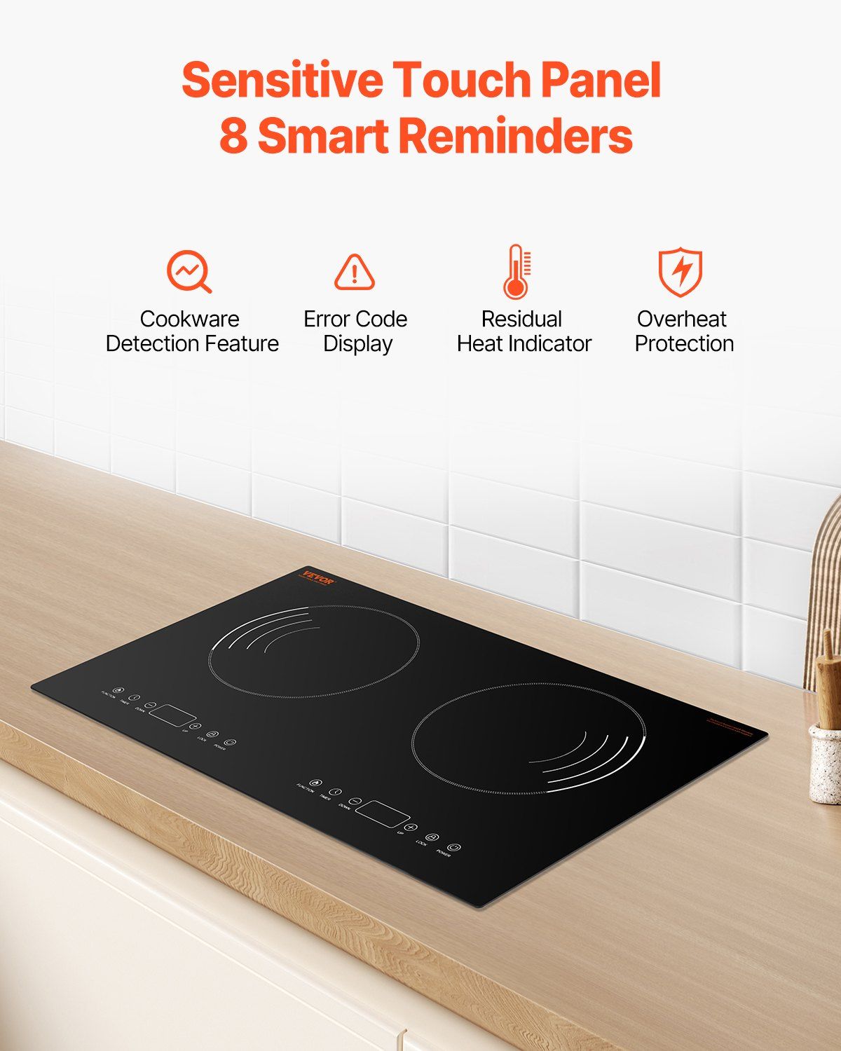 2.Compatible with Multiple Cookware: Compatible with 2 types of high-temperature cookware, such as cast iron and stainless steel, this electric countertop burner offers efficient cooking with 2 zones that can work simultaneously. This helps reduce heat loss while cooking.Note: Only cookware with magnetic properties can be used on this induction cooktop.
