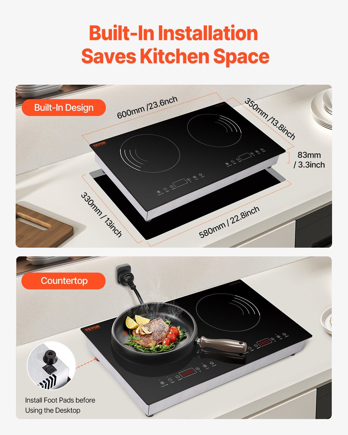 This electric stove top offers dual functionality to meet various needs. Its easy installation requires minimal modification to your kitchen cabinets and countertops, saving valuable kitchen space.
