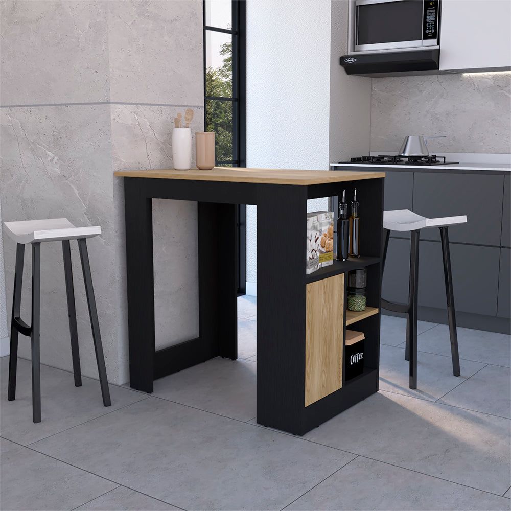 The Wynne Kitchen Island - is the perfect blend of style and functionality for your culinary space! This charming piece, crafted from durable manufactured wood, boasts a chic Black/Natural oak finish. Its great top (36.2"W x 23.2"D) doubles as a cozy dining table, while the compact size ensures seamless integration into your kitchen. The single-door cabinet (10.5"W x 17.8"H) offers concealed storage with an exclusive push to open system, and open shelves provide easy access to spices or essentials. Enhance your kitchen's charm and efficiency with the versatile Wynne Kitchen Island.