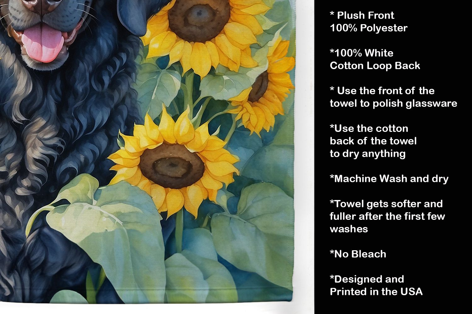 Curly-Coated Retriever in Sunflowers Kitchen Towel Dish Cloths Guest Hand Towel Decorative Bathroom Towel for Face,Tea, Dishcloth, Kitchen and Bath