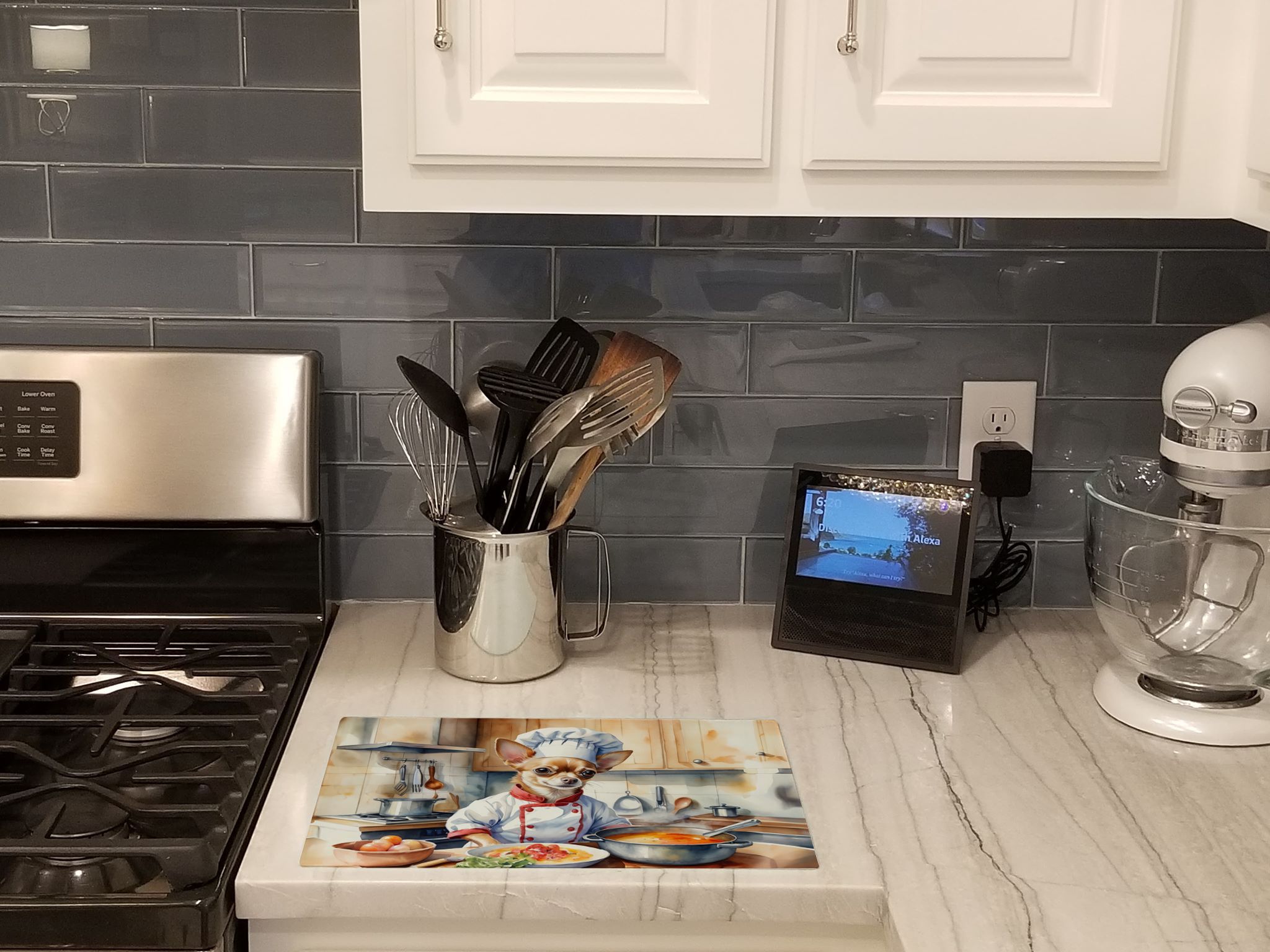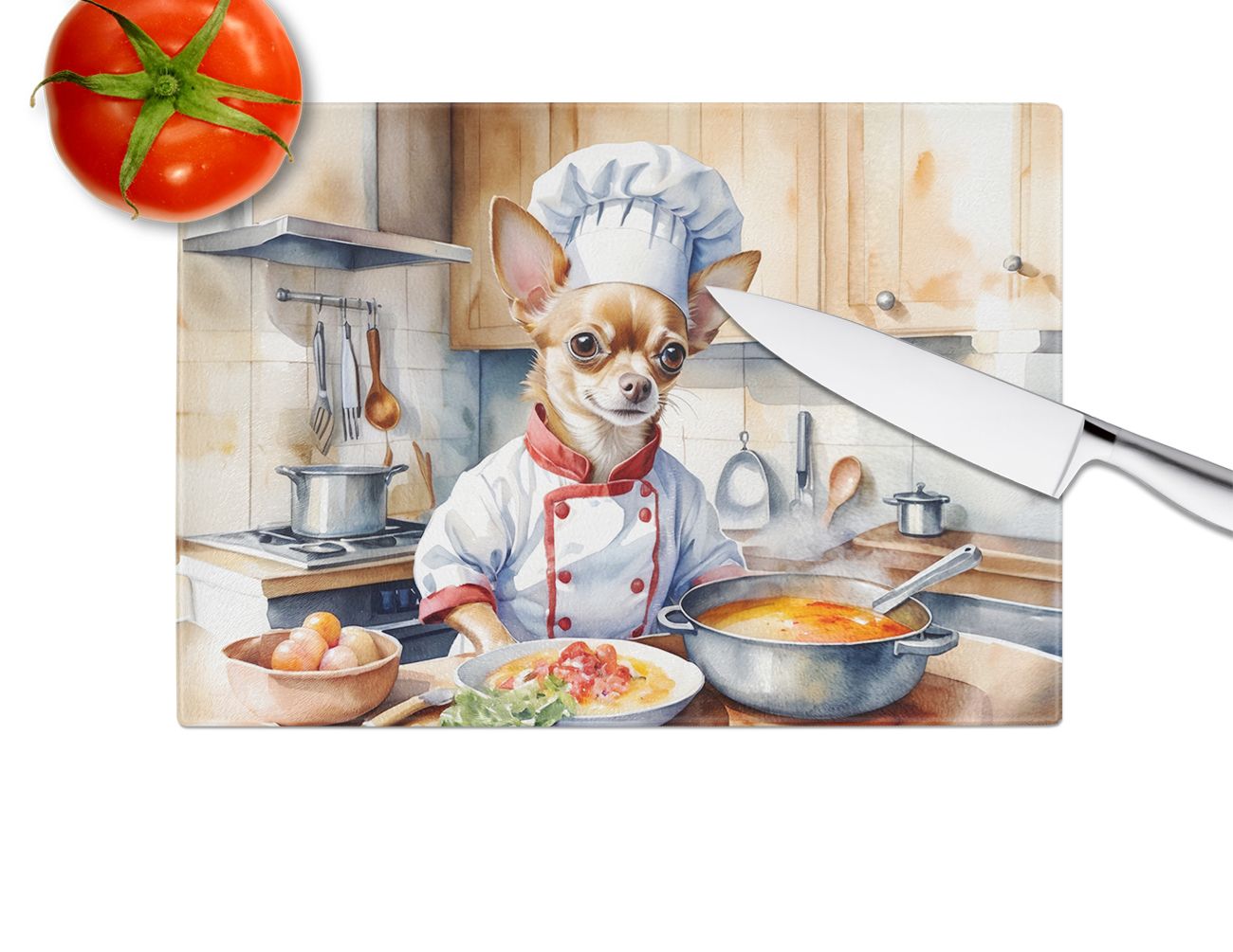 Home > NEW Chihuahua The Chef Glass Cutting Board Decorative Tempered Glass Kitchen Cutting and Serving Board Large Size Chopping Board