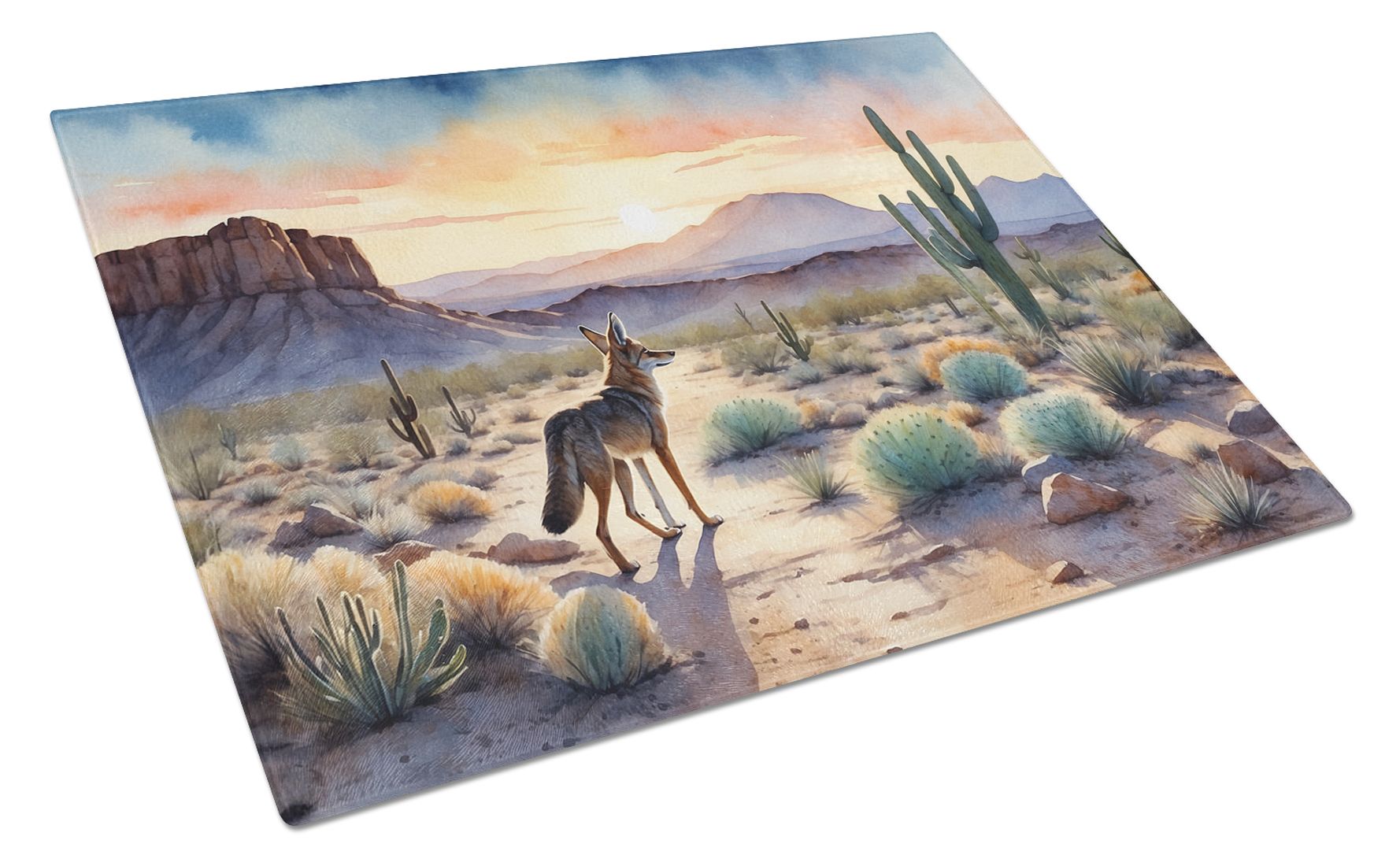 Home > Desert Sunset Coyote Glass Cutting Board Decorative Tempered Glass Kitchen Cutting and Serving Board Large Size Chopping Board