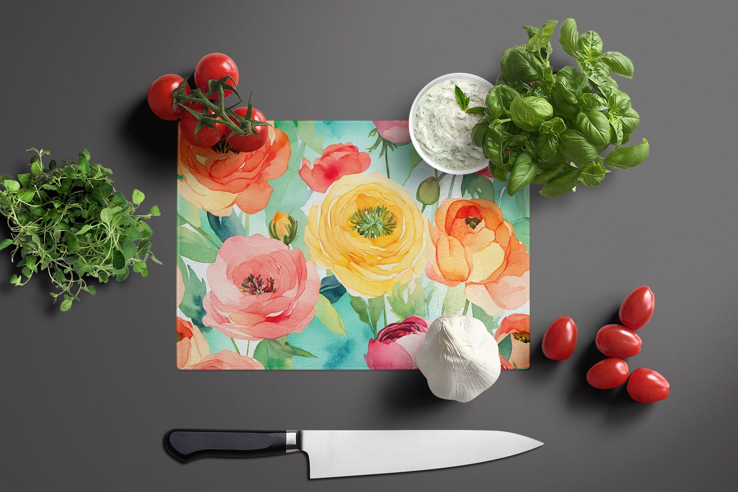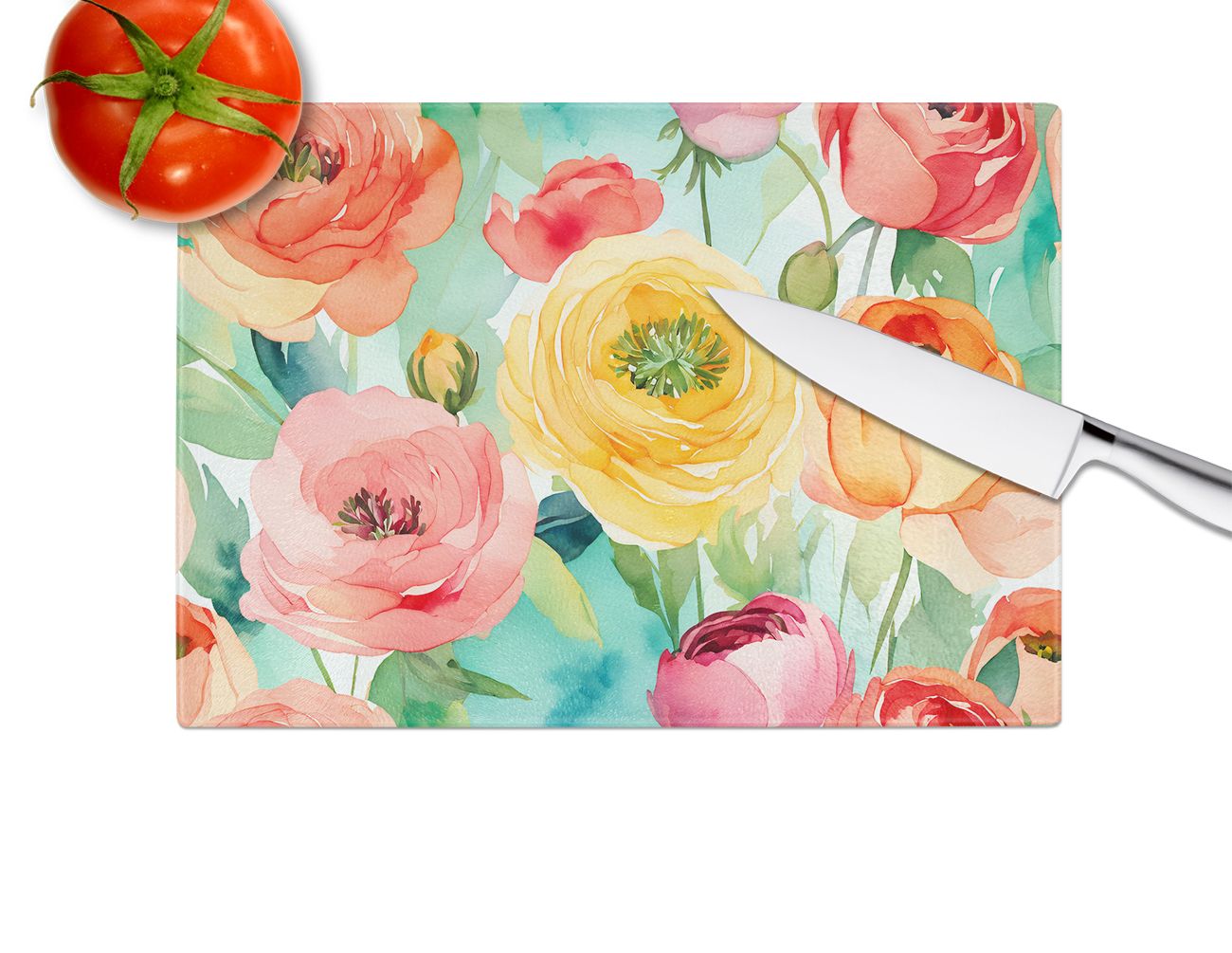 Home > NEW Ranunculus in Watercolor Glass Cutting Board Decorative Tempered Glass Kitchen Cutting and Serving Board Large Size Chopping Board
