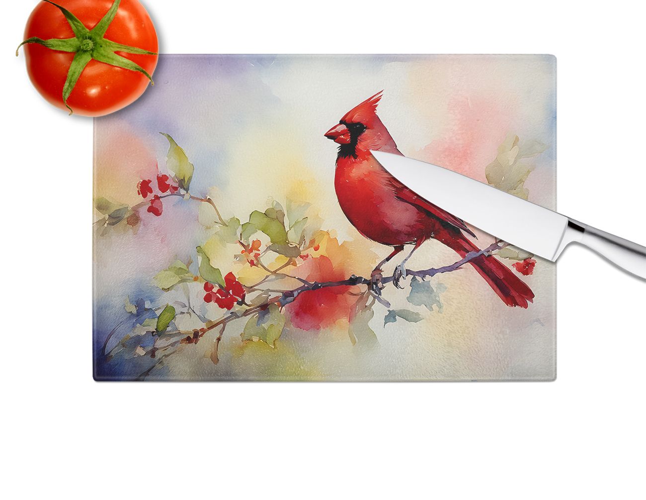 Glass Cutting Board featuring breed specific Cardinal artwork. Introduce your kitchen to the vibrant, large Decorative Glass Cutting Board from Caroline's Treasures. Crafted from resilient tempered glass, this board is not only a utilitarian necessity but also a colorful art piece. With its generous dimensions of 15 inches in height and 12 inches in length, it offers ample space for all your cutting needs. Every piece showcases captivating artwork from distinguished artists, bringing an aesthetic edge to your kitchen. Beyond its attractive design, this cutting board ensures your countertop stays pristine and unscathed, owing to its heat-resistant properties. Engineered with user convenience in mind, it features non-skid feet for stability, and rounded corners for additional safety. Its robust construction renders it virtually unbreakable, guaranteeing longevity. The board comes with protective feet bumpers, maintaining its position during use. This product is recommended to be hand washed only. Proudly printed and assembled in the United States, this cutting board exemplifies superior craftsmanship. With Caroline's Treasures' Decorative Glass Cutting Board, you're investing in a blend of functionality and artistic flair.