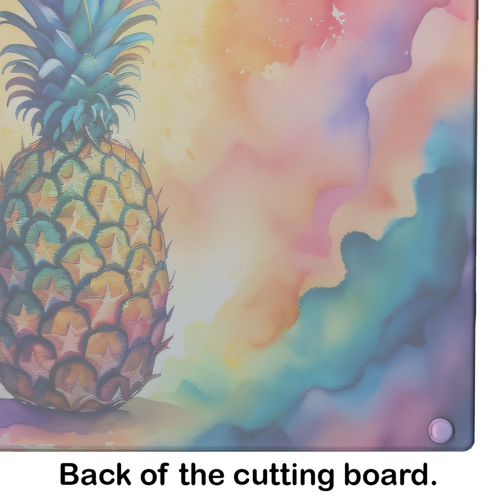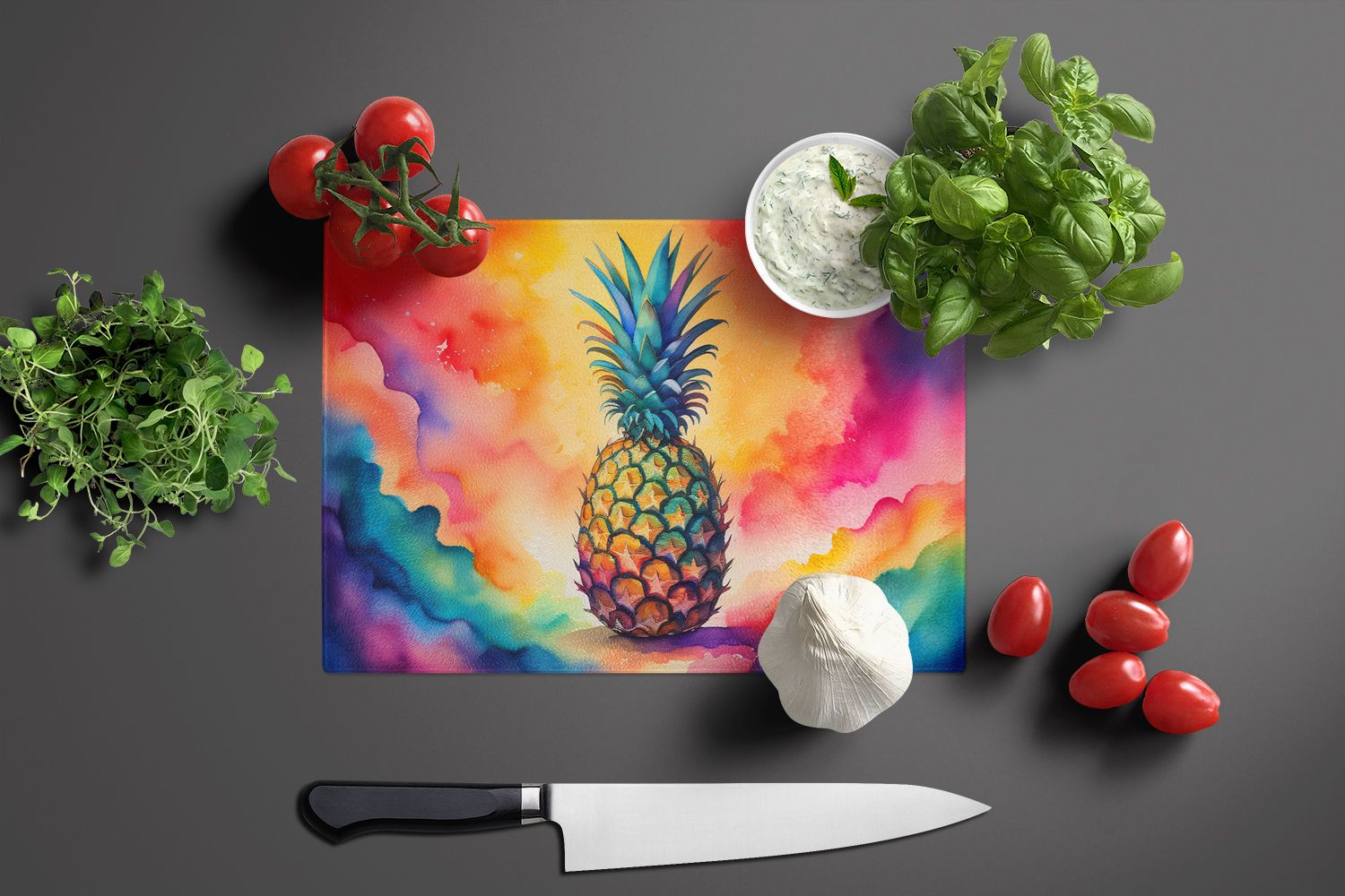 Glass Cutting Board featuring breed specific Pineapples artwork. Introduce your kitchen to the vibrant, large Decorative Glass Cutting Board from Caroline's Treasures. Crafted from resilient tempered glass, this board is not only a utilitarian necessity but also a colorful art piece. With its generous dimensions of 15 inches in height and 12 inches in length, it offers ample space for all your cutting needs. Every piece showcases captivating artwork from distinguished artists, bringing an aesthetic edge to your kitchen. Beyond its attractive design, this cutting board ensures your countertop stays pristine and unscathed, owing to its heat-resistant properties. Engineered with user convenience in mind, it features non-skid feet for stability, and rounded corners for additional safety. Its robust construction renders it virtually unbreakable, guaranteeing longevity. The board comes with protective feet bumpers, maintaining its position during use. This product is recommended to be hand washed only. Proudly printed and assembled in the United States, this cutting board exemplifies superior craftsmanship. With Caroline's Treasures' Decorative Glass Cutting Board, you're investing in a blend of functionality and artistic flair.