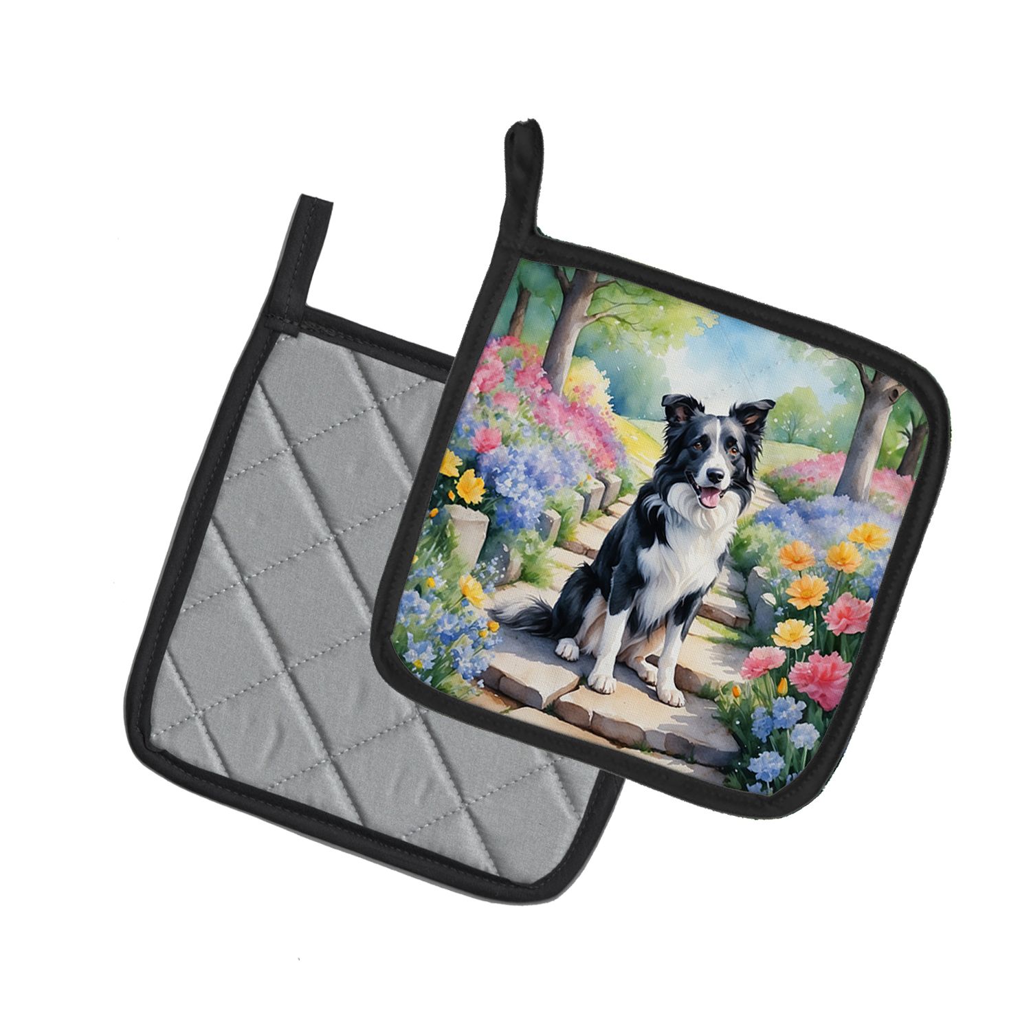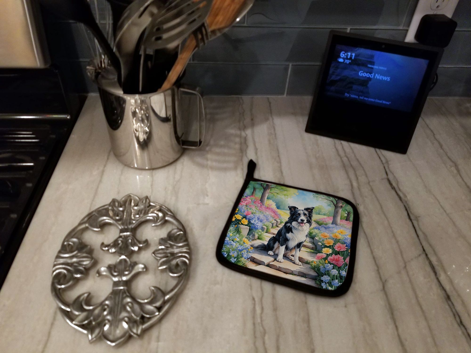 Border Collie Spring Path Pair of Pot Holders Kitchen Heat Resistant Pot Holders Sets Oven Hot Pads for Cooking Baking BBQ, 7 1/2 x 7 1/2