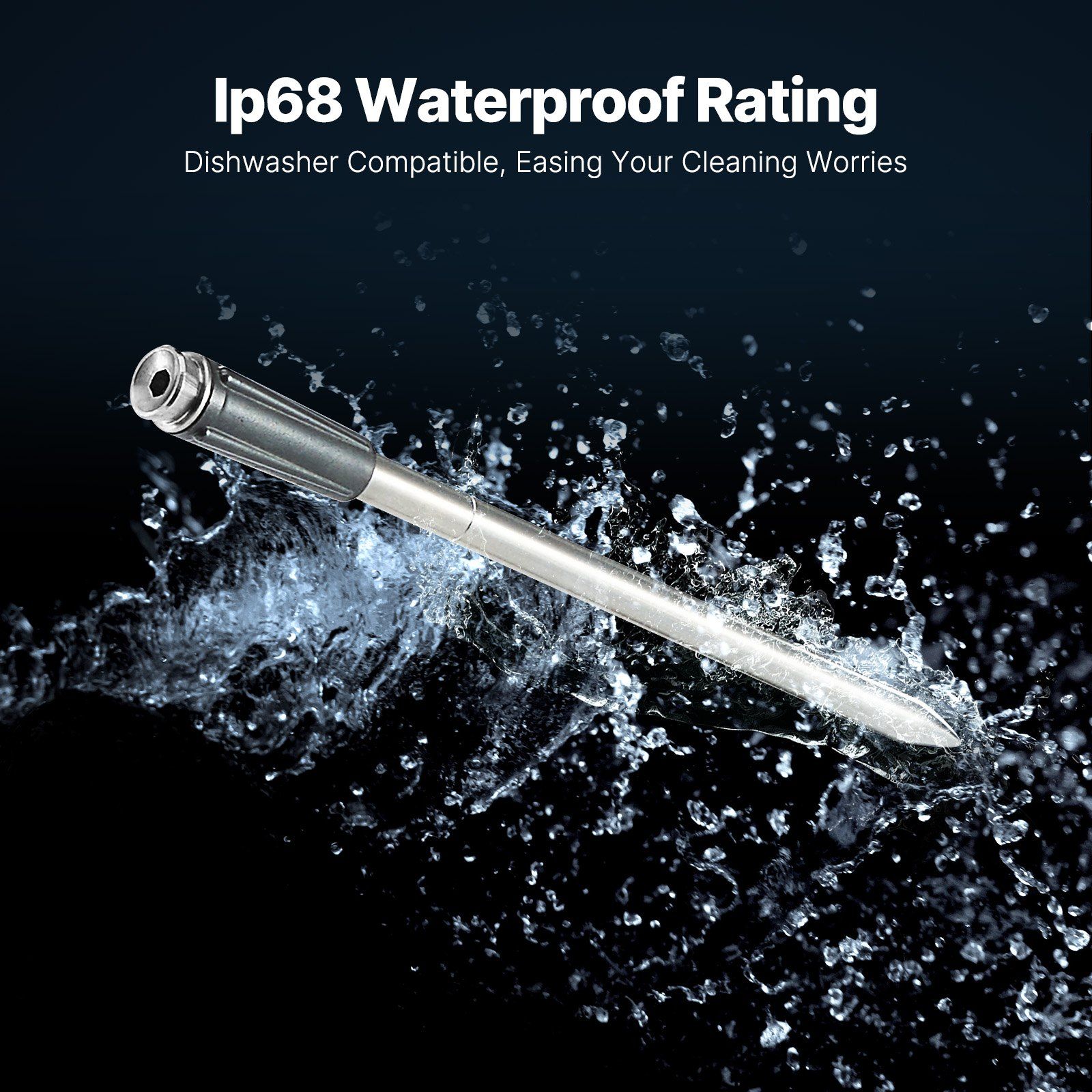 This remote meat thermometer works with grills, ovens, smokers, and more - ideal for kitchens, patios, and barbecues. Its IP68 waterproof rating means it's dishwasher-secure, tackling grease efficiently for quick cleanup.