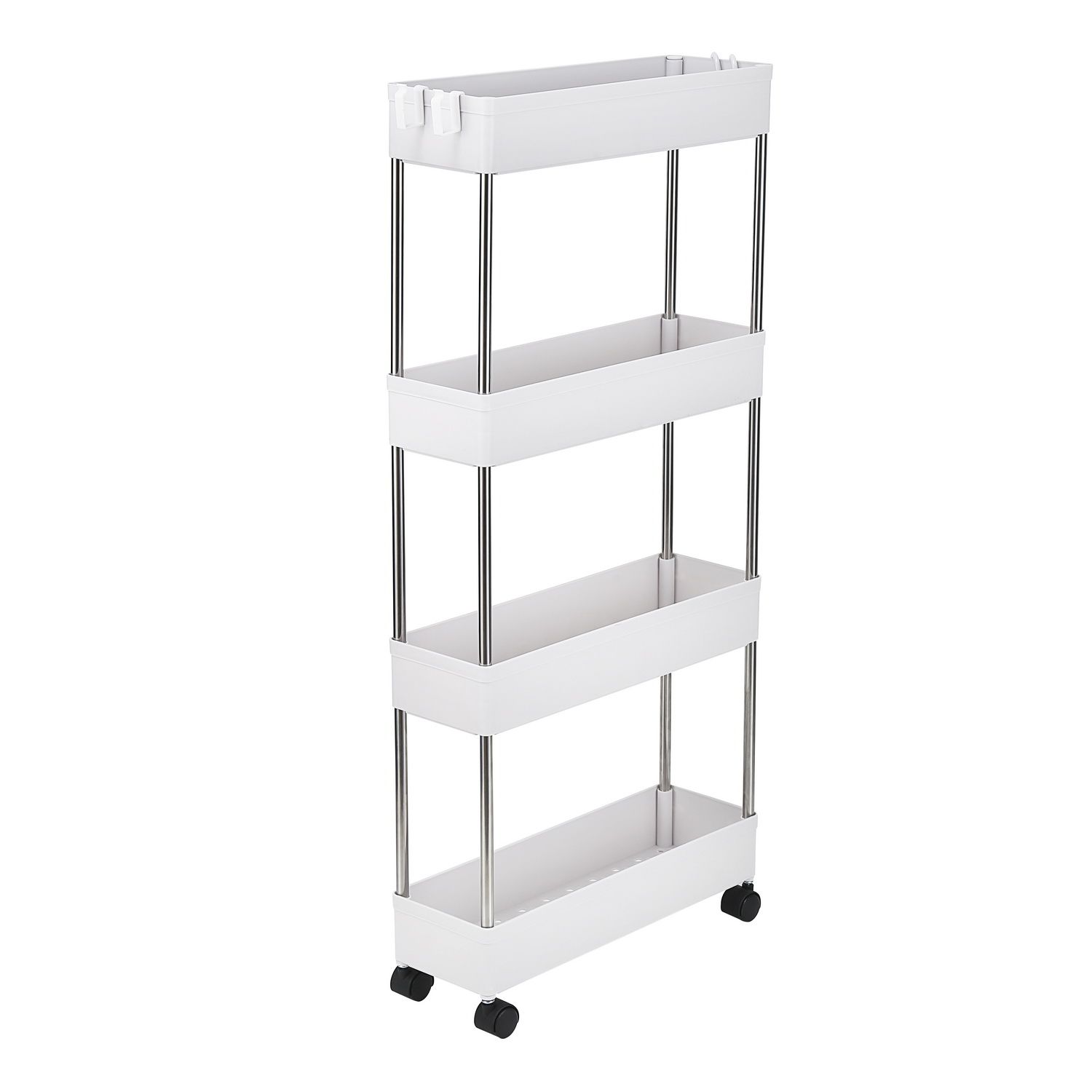 Home > 4 Tier Slim Storage Cart Mobile Shelving Unit Organizer Slide Out Storage Rolling Utility Cart Tower Rack for Kitchen Bathroom Laundry Narrow Places,