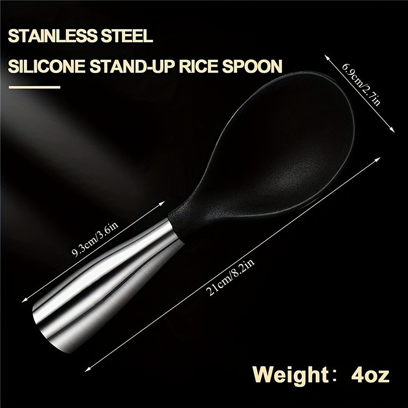 Home > Rice Paddle; Silicone Standing Rice Spoon; Stainless Steel Handle Rice Scooper; Round Edge Not Rust Rice Serving Spoon; Non-Stick Rice Spatula Kitchen