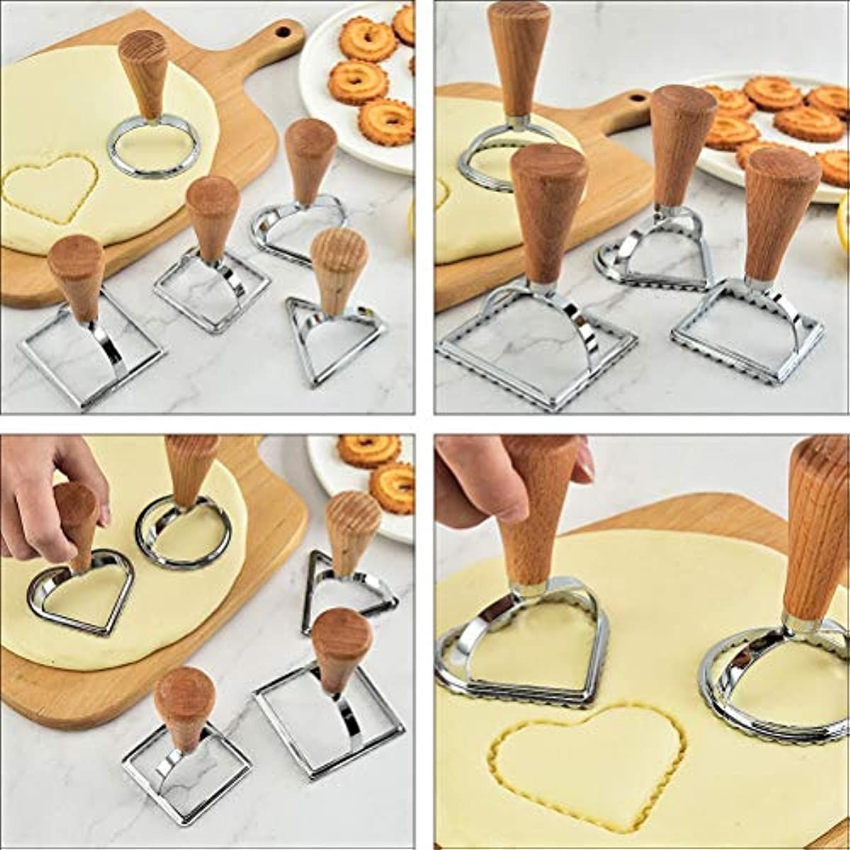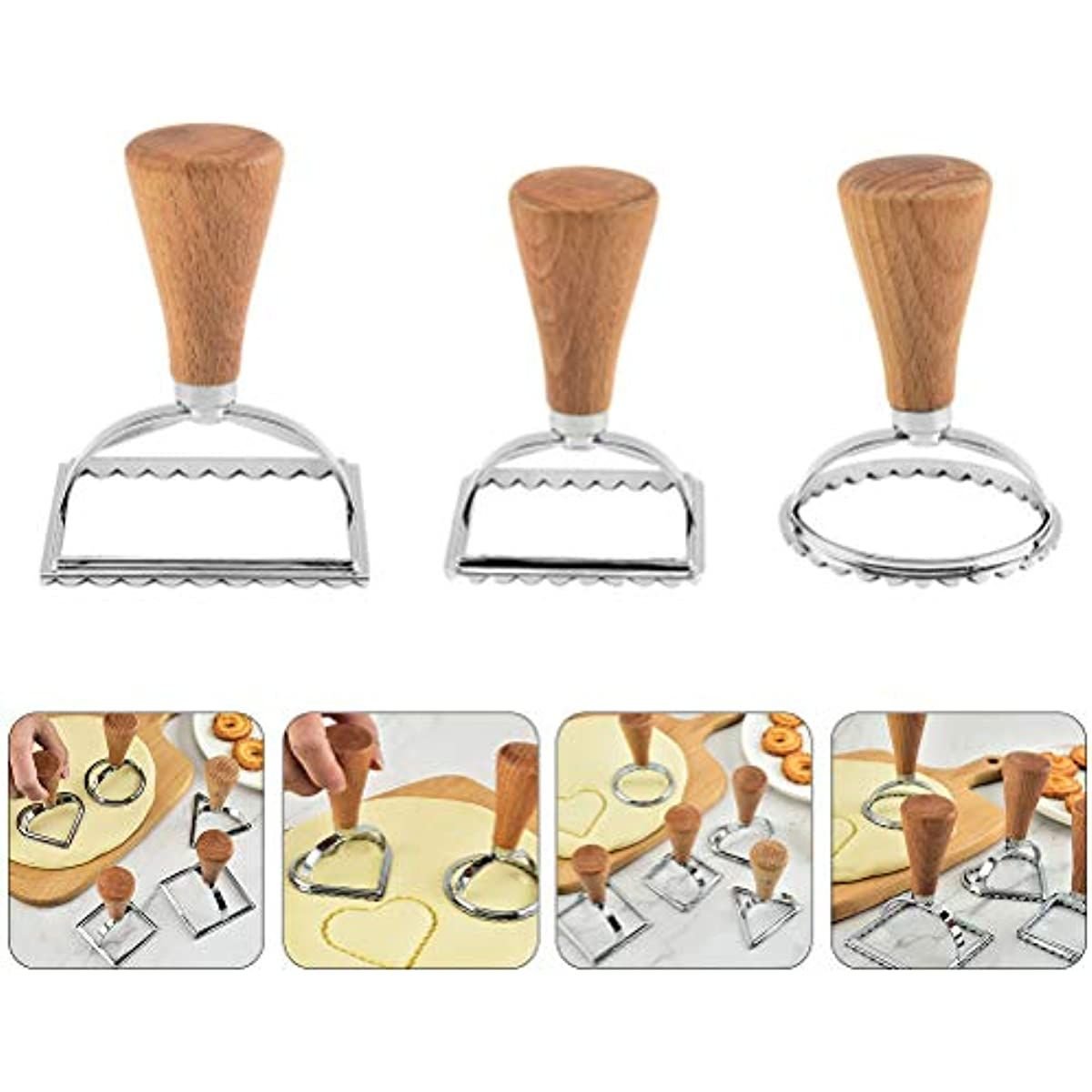 5 Pack Cookie Stamp Maker Cutter Wooden Handle Lace Pastry Mold With Fluted Edge