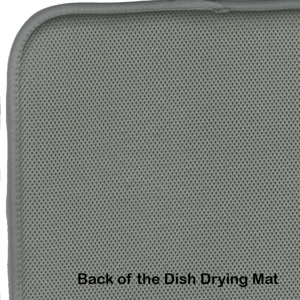 Dish Drying Mat featuring breed specific Corgi artwork. Say goodbye to messy countertops and soggy dish towels with our innovative dish drying mat. Our high-quality dish drying pad is designed to keep your countertops dry while offering a stylish and efficient solution. Whether you're air drying dishes, glasses, stemware, silverware, pots, pans, bottles, or even fruits and vegetables, our dish mat is the perfect choice. The 14 inches x 22 inches size fits most counters and dish drying racks, and the non-slip design ensures stability. Made with water-absorbent polyester and a polyurethane foam insert, our dish drying mat is not only functional but also durable. It's machine washable and printed in the USA for long-lasting use. The beautiful artwork adds flair to your kitchen decor, making it a perfect housewarming gift or present for any occasion. Upgrade your kitchen experience with our absorbent and versatile dish drying mat.