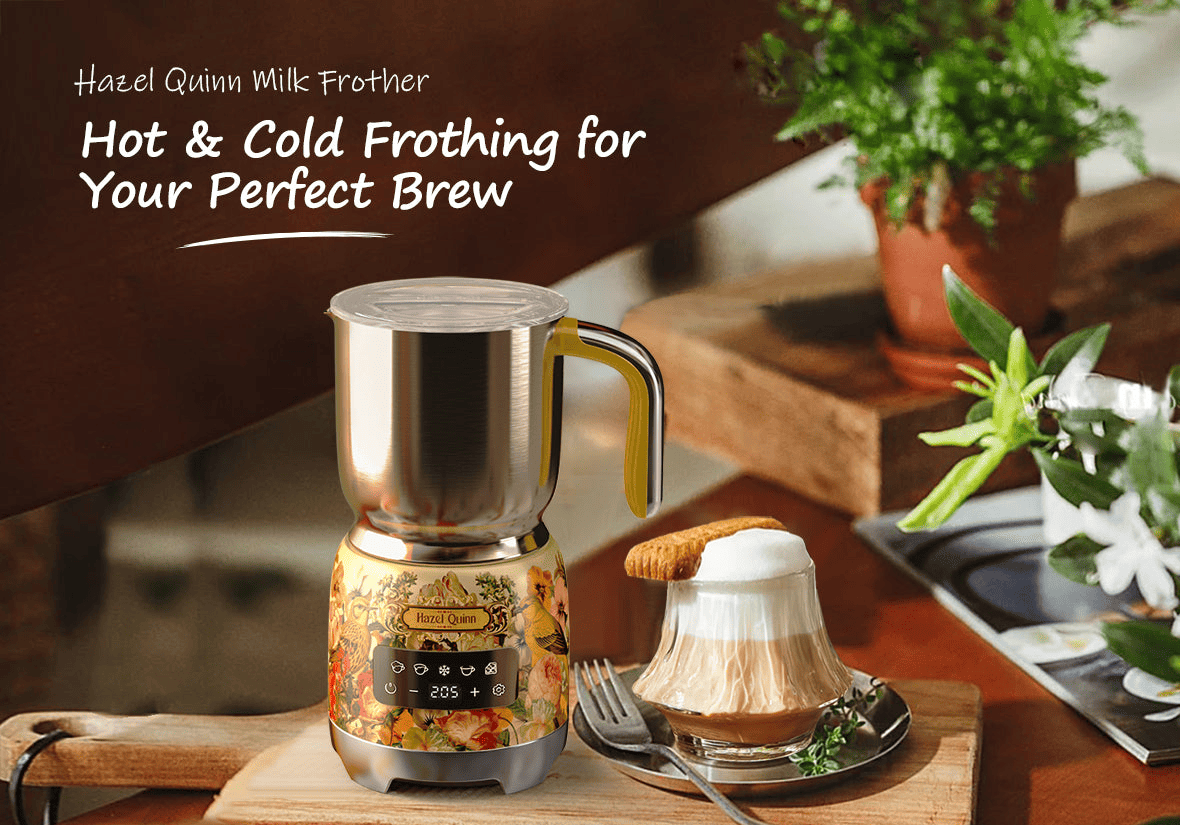 [Hot and cold foaming] -Hazel Quinn, the milk foam appliance has 4 adjustable temperatures to provide your perfect foam-45°C / 55°C / 65°C and cold foaming. Great for making hot and iced coffee for all your beverage needs.