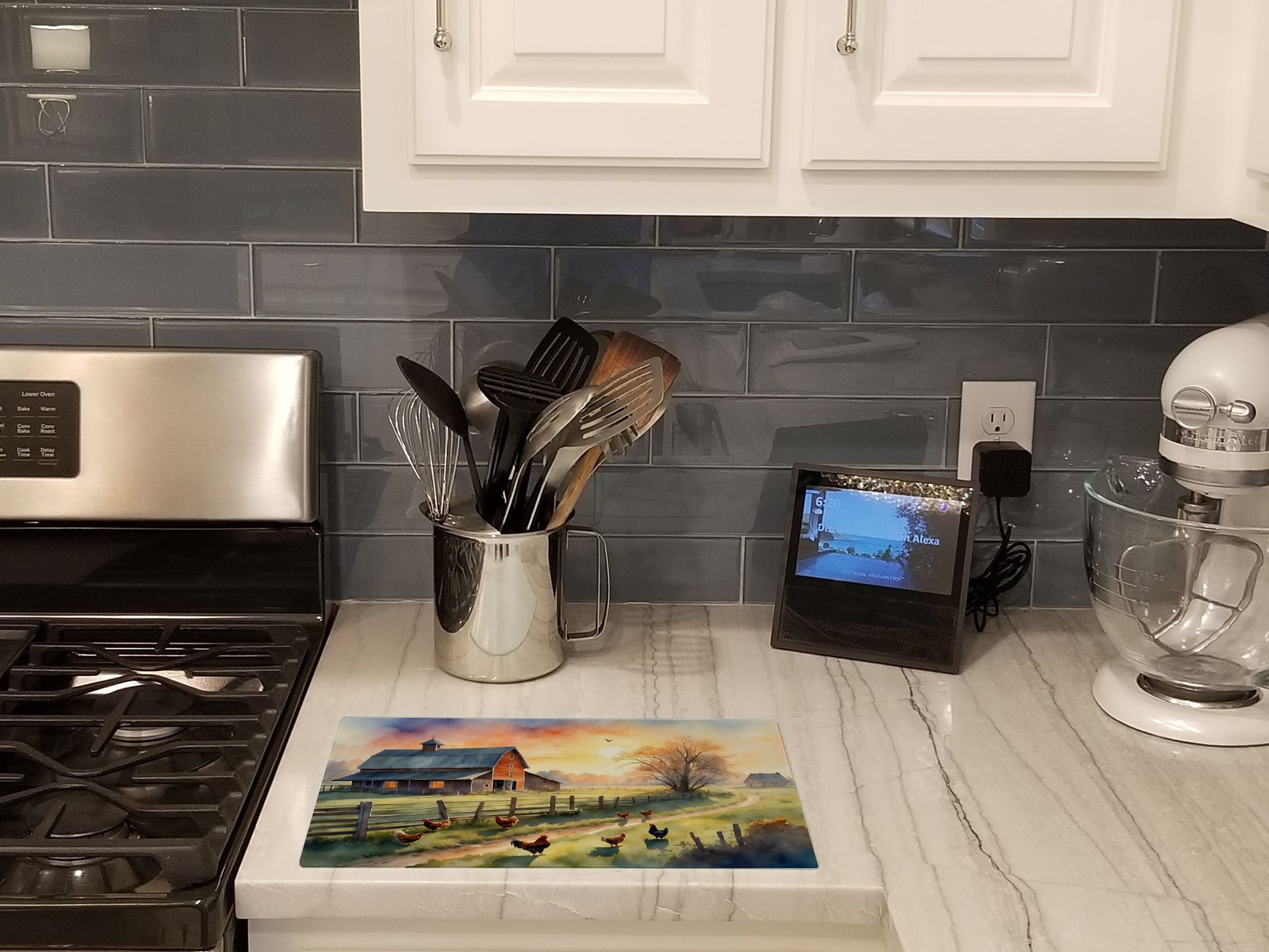 Home > Chicken Farmyard Sunrise Glass Cutting Board Decorative Tempered Glass Kitchen Cutting and Serving Board Large Size Chopping Board