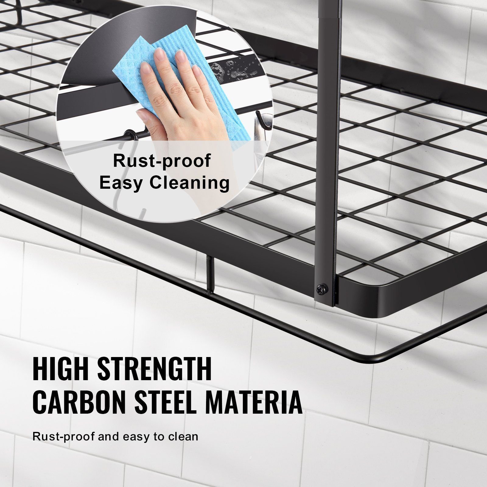 The thick carbon steel pot rack hanging is rust-proof and features easy cleaning. It prevents the accumulation of oil and grease, keeping your kitchen clean.
