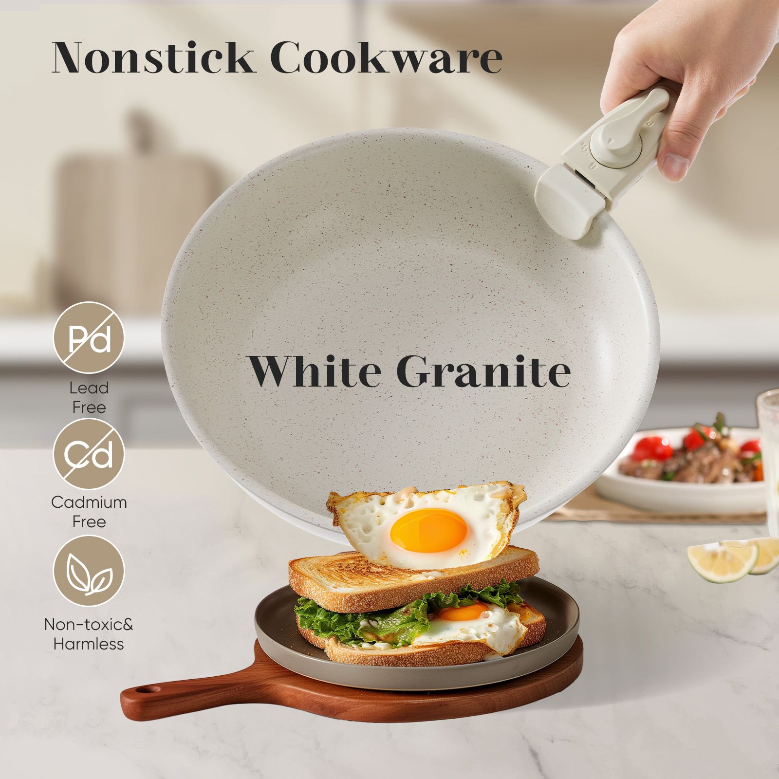 The granite non-stick coating is safe for use. It is free from potentially harmful chemicals, ensuring your meals won't be contaminated by any unwanted substances. Experience worry-free cooking with our safe and high-quality cookware set.
