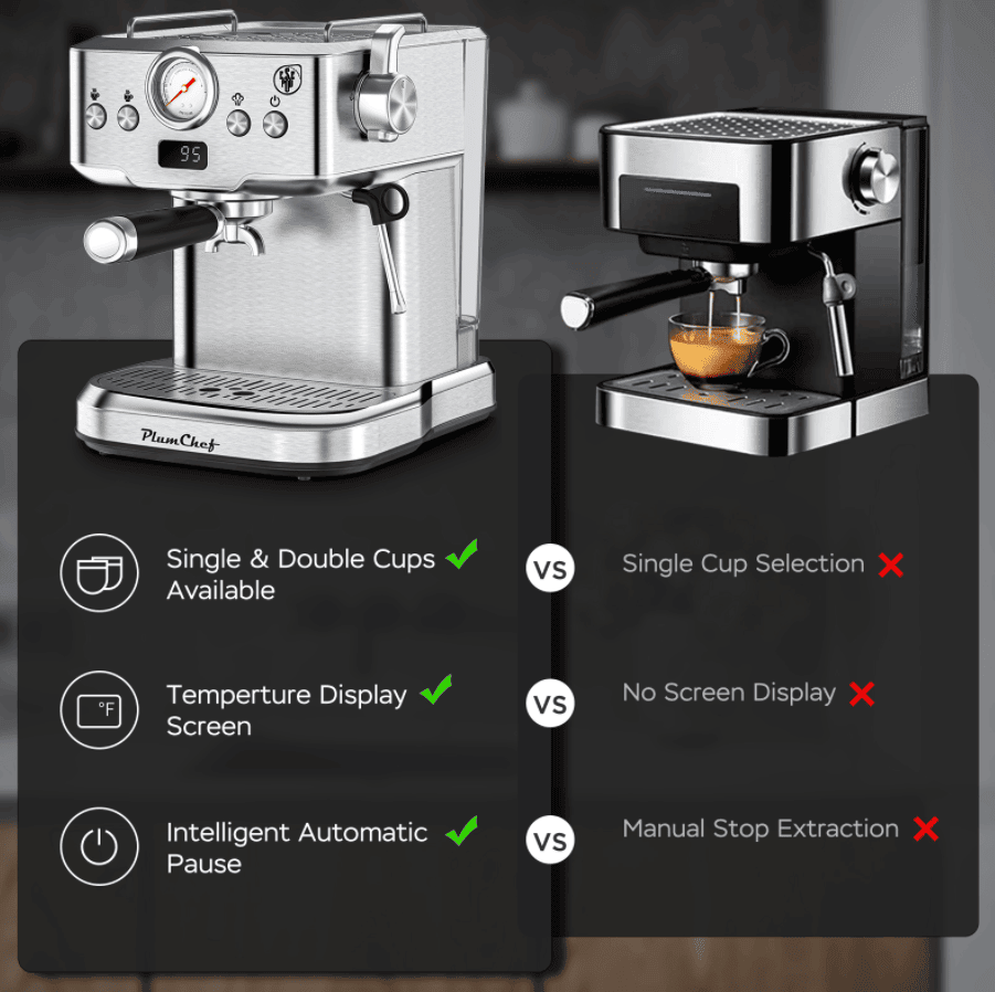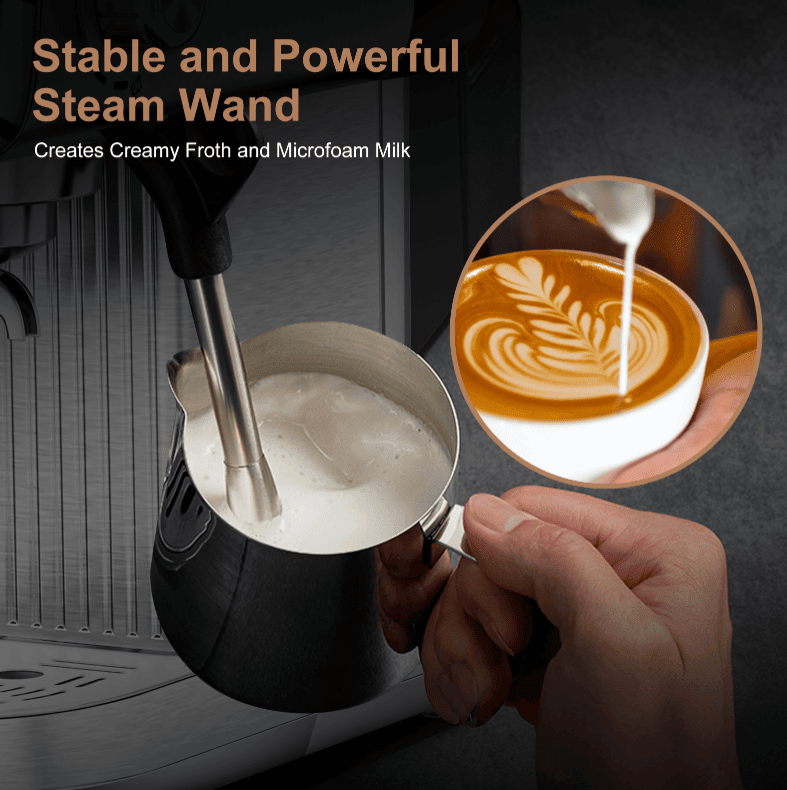 SKU: W1002P292436 1350W Semi-automatic Coffee Machine 20Bar Professional Concentrated Coffee Maker with Milk Foamer, Single Shot and Double Shot, Compatible with ESE POD 1.5L Water Tank, Capsule Filter and Foam Maker Steam Wand Single Shot and Double Shot Pressure Gauge Display, Capable of Making Cappuccino, Latte, and Macchiato with a Mobile Water Tank Electronic Buttons Hammer 51mm Touch Sensing Steam Function with Foamer, Ideal for Home Coffee