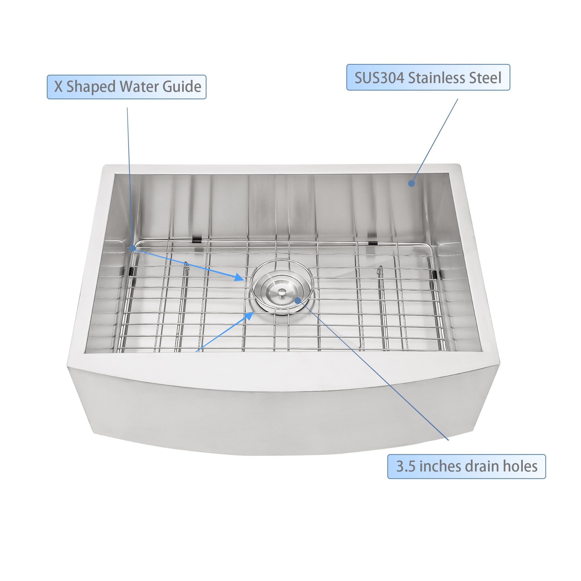 2.This farmhouse sink with X-shaped diversion water design; with a gently sloped bottom that prevents standing water inside the bowl fast drainage; no blockage.