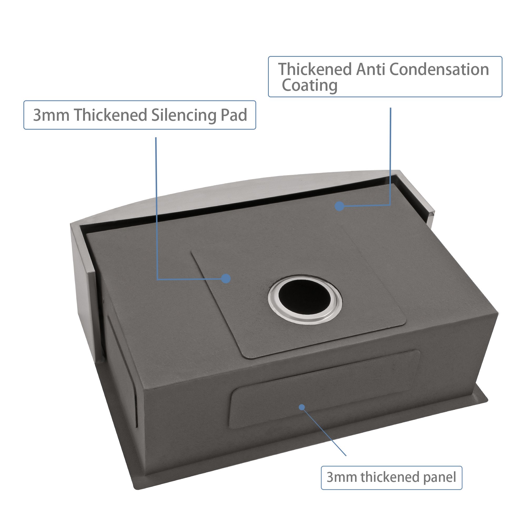 5.The gunmetal black kitchen sink outer layer adopts innovative NANO pvd technology, which is resistant to physical scratches, anti-pot and bowl collision, leaving no water marks, very easy to clean, anti-freezing heat and no water seepage, durable.