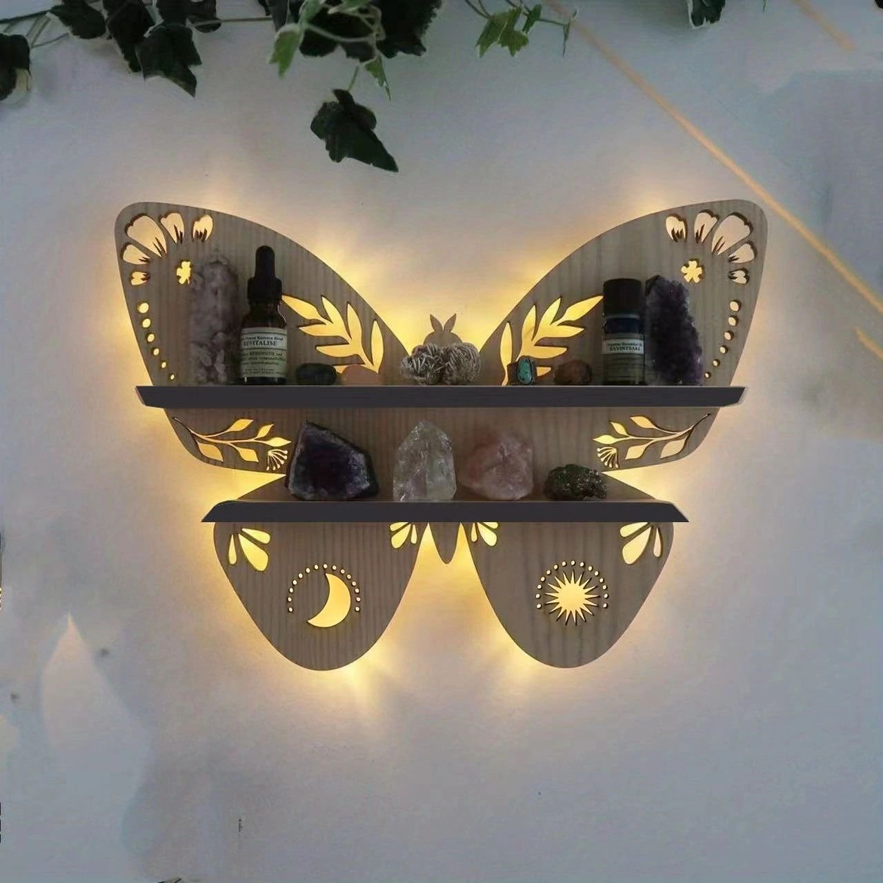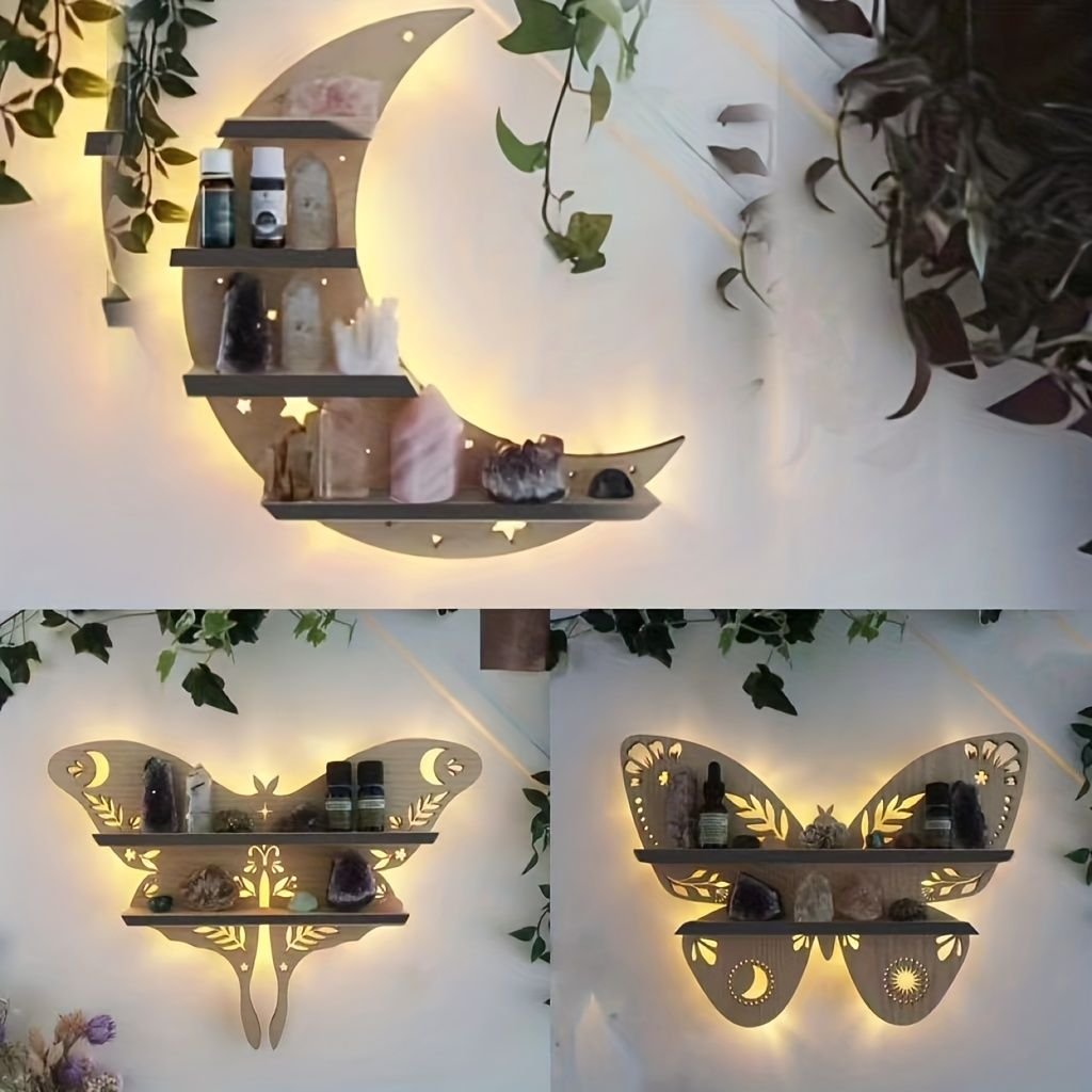 Home > 1pc Crystal Display Shelf - Wall Mounted Decorative Shelf for Moon Moth Butterfly Lamp - Perfect for Halloween, Thanksgiving, Christmas, and New Year